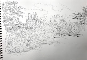 The top picture is a pen and ink drawing of a garden scene. I always love the look of pen and ink - lovely detail, delicate shading with line or stipple - it just captures my imagination.